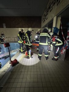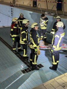 Die besondere Umgebung des ehemaligen Hallenbades bot dabei ideale Bedingungen für diese Übung. Für viele der Beteiligten war das Betreten der alten Schwimmhalle zudem mit persönlichen Erinnerungen verbunden – schließlich haben hier einige Kameradinnen und Kameraden in ihrer Kindheit das Schwimmen gelernt.